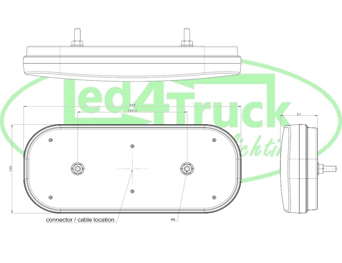 LED Achterlicht rechts met rechthoek reflector 12/24v