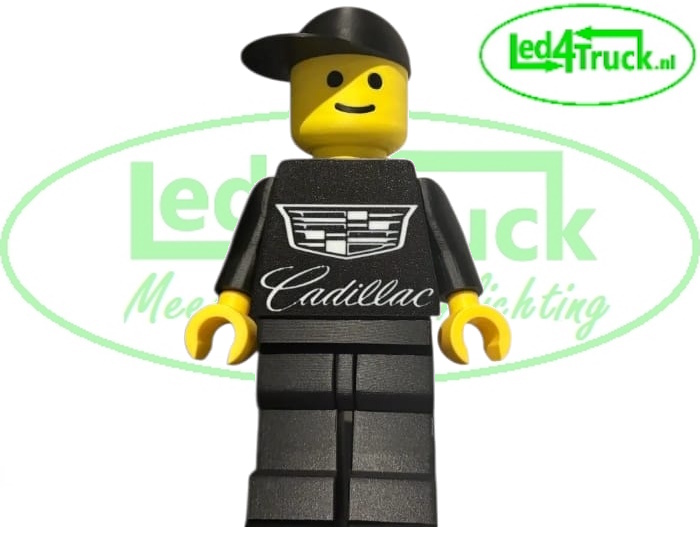 Legopop met het merk Cadillac op het shirt. Pop is 20cm hoog en 11,5 cm breed