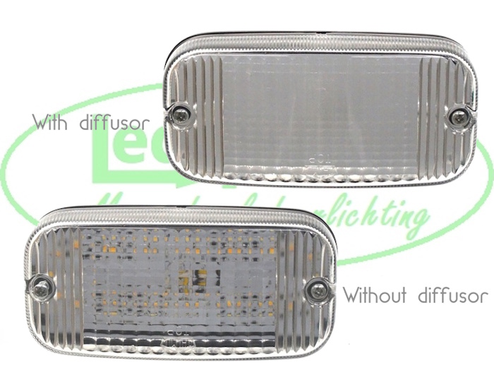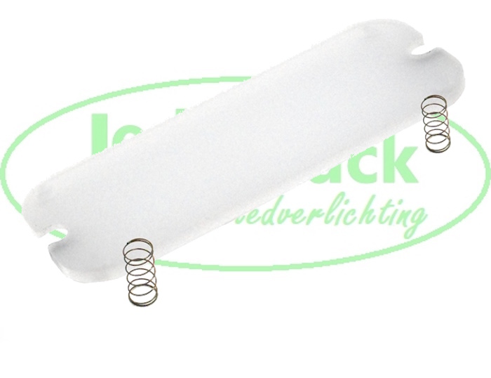 De diffuser bestaat uit een matglazen plaat en twee veren. Het glas wordt uit de lamp verwijderd, de twee veren worden over de twee schroefgaten geplaatst, de diffuser wordt daarop gezet en de lamp wordt gesloten.